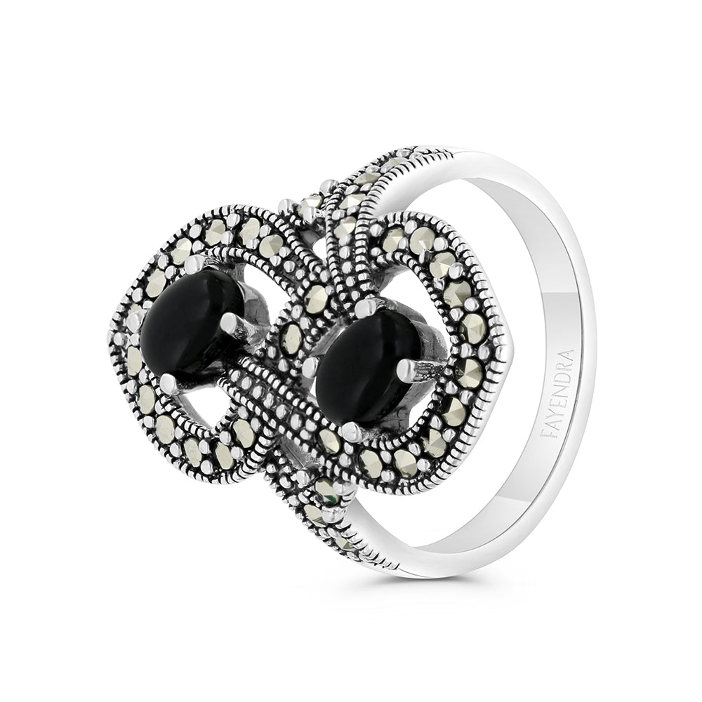 خاتم من الفضة الخالصة عيار 925 مرصع احجار اونكس و ماركسايت