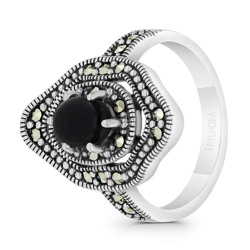 خاتم من الفضة الخالصة عيار 925 مرصع احجار اونكس و ماركسايت