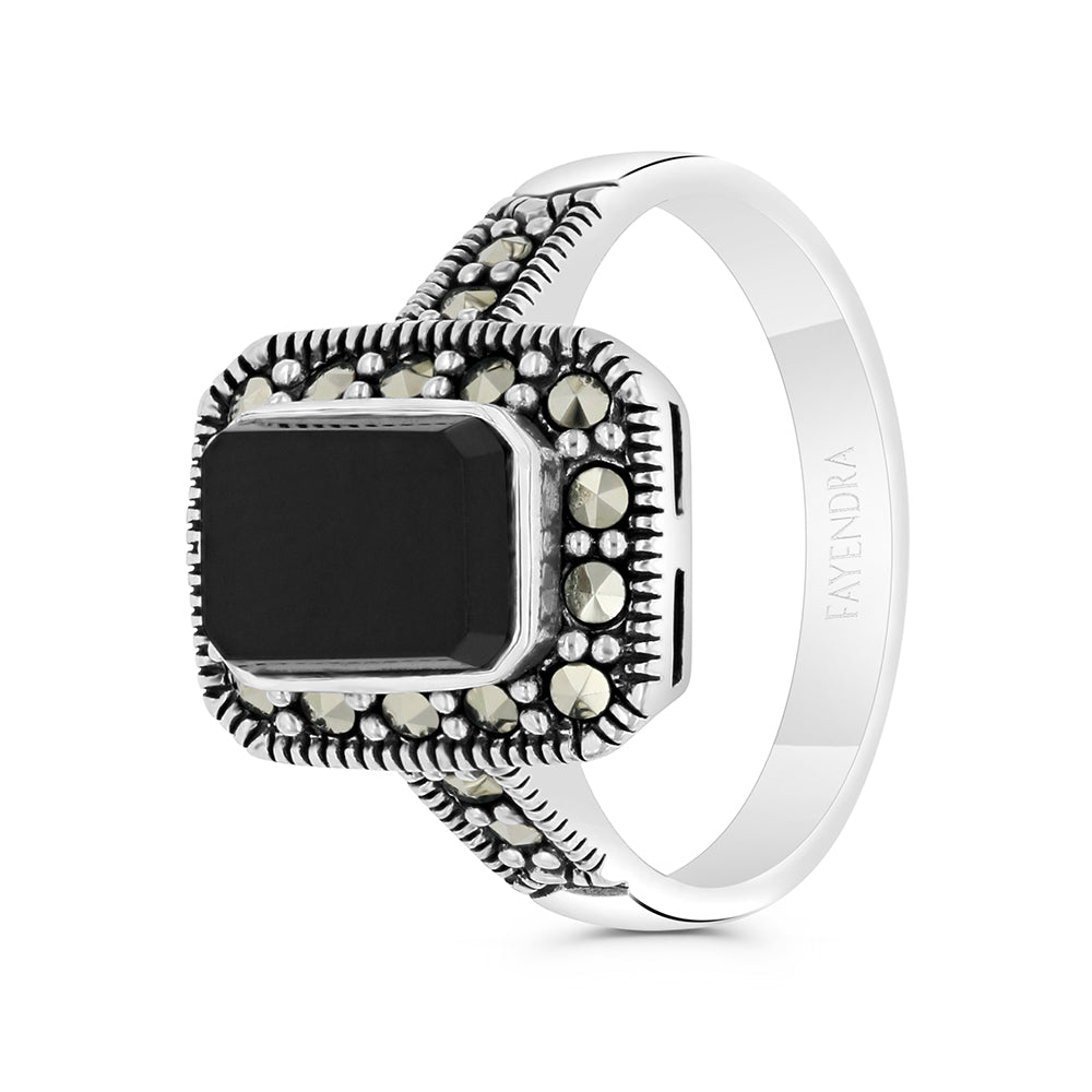 خاتم من الفضة الخالصة عيار 925 مرصع احجار اونكس و ماركسايت
