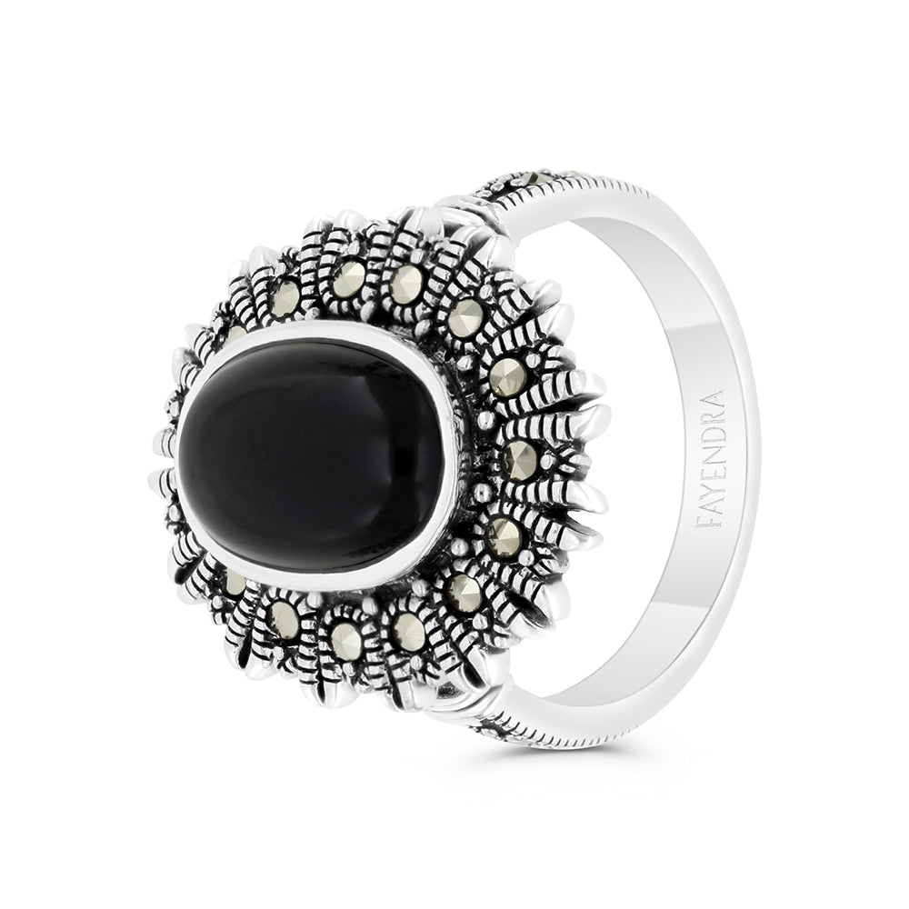 خاتم من الفضة الخالصة عيار 925 مرصع احجار اونكس و ماركسايت