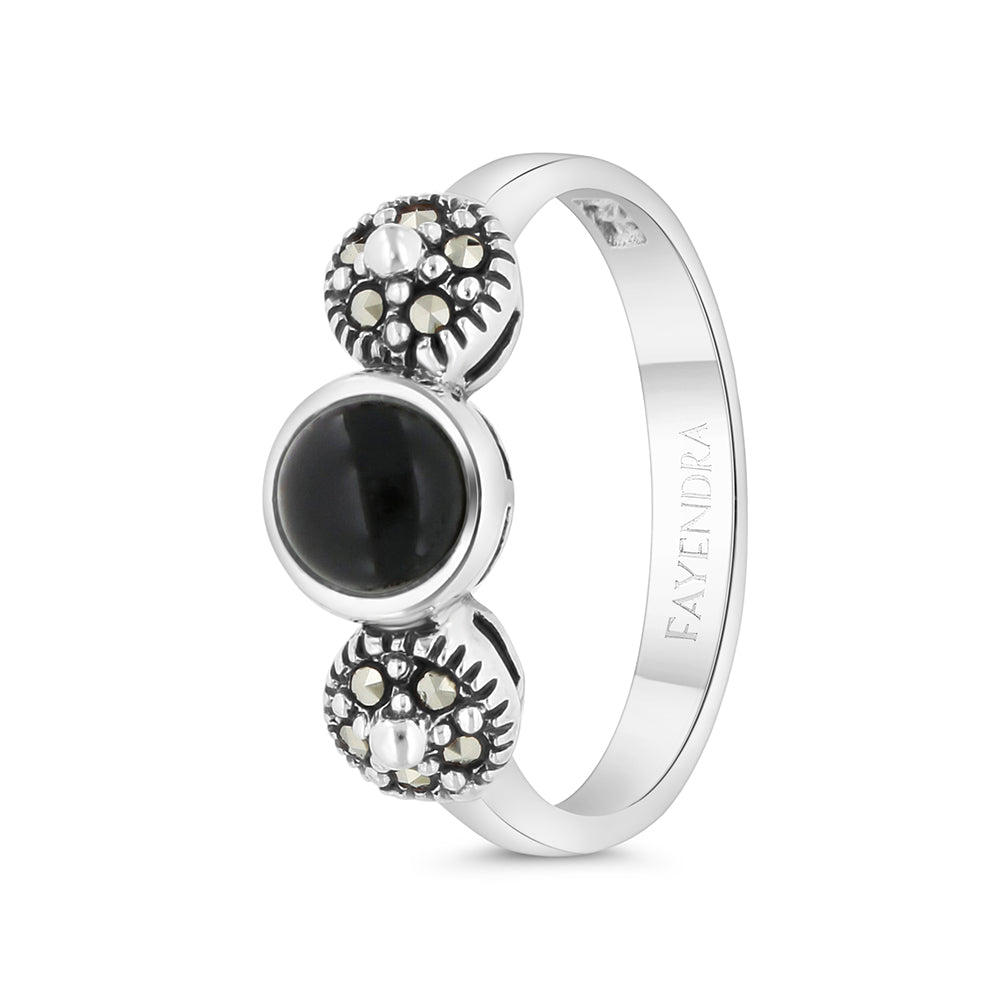 خاتم من الفضة الخالصة عيار 925 مرصع احجار اونكس الطبيعي و ماركسايت
