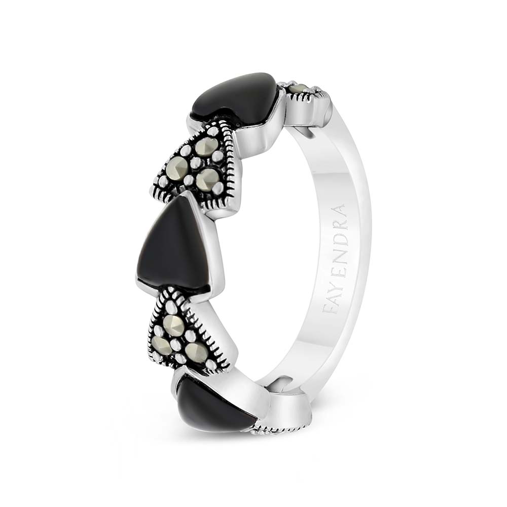 هذا الخاتم الرائع يتميز بتصميمه المترابط. حيث يترابط مزيج من أحجار الماركسيت والأونيكس معًا لتشكيل هذه التحفة الفنية. سيبدو الخاتم المصنوع من الفضة الإسترليني عيار 925 مدهشا عند دمجه ومطابقته مع خواتم ناعمة أخرى من مجموعتنا الكلاسيكية.