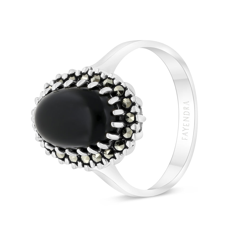 هذا الخاتم من فايندرا يستحق طلتك البهية. صنع بعناية من الفضة الخالصة عيار 925 مرصع احجار اونكس الطبيعي و الماركسايت ليضيف لمسة من الرقي إلى مظهرك. قد ترغبين في إضافة المزيد من التألق من خلال تصفح بقية هذه المجموعة.