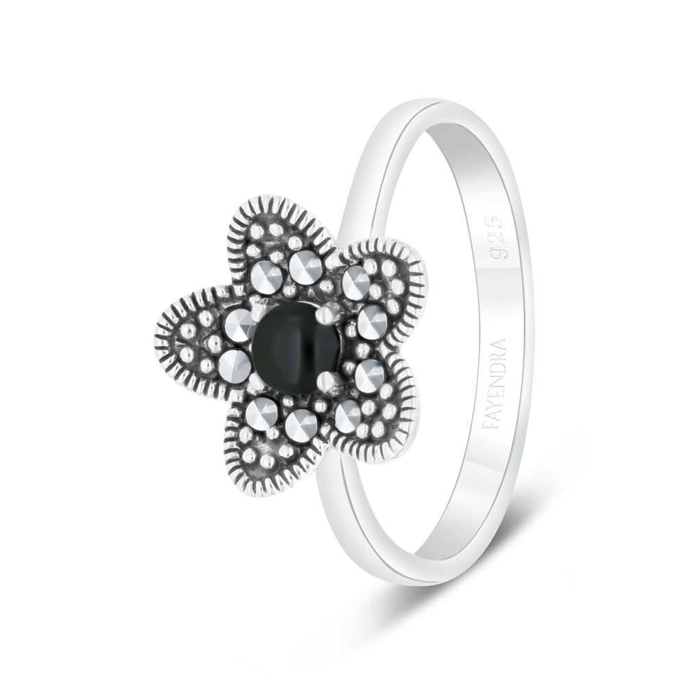 خاتم من الفضة الخالصة عيار 925 مرصعة عقيق اسود طبيعي و ماركسايت