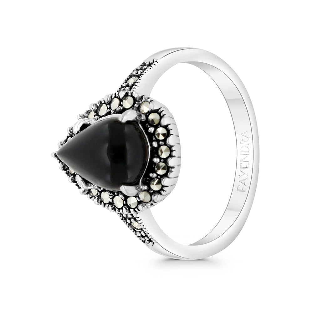 خاتم من الفضة الخالصة عيار 925 مرصع احجار اونكس الطبيعي و ماركسايت