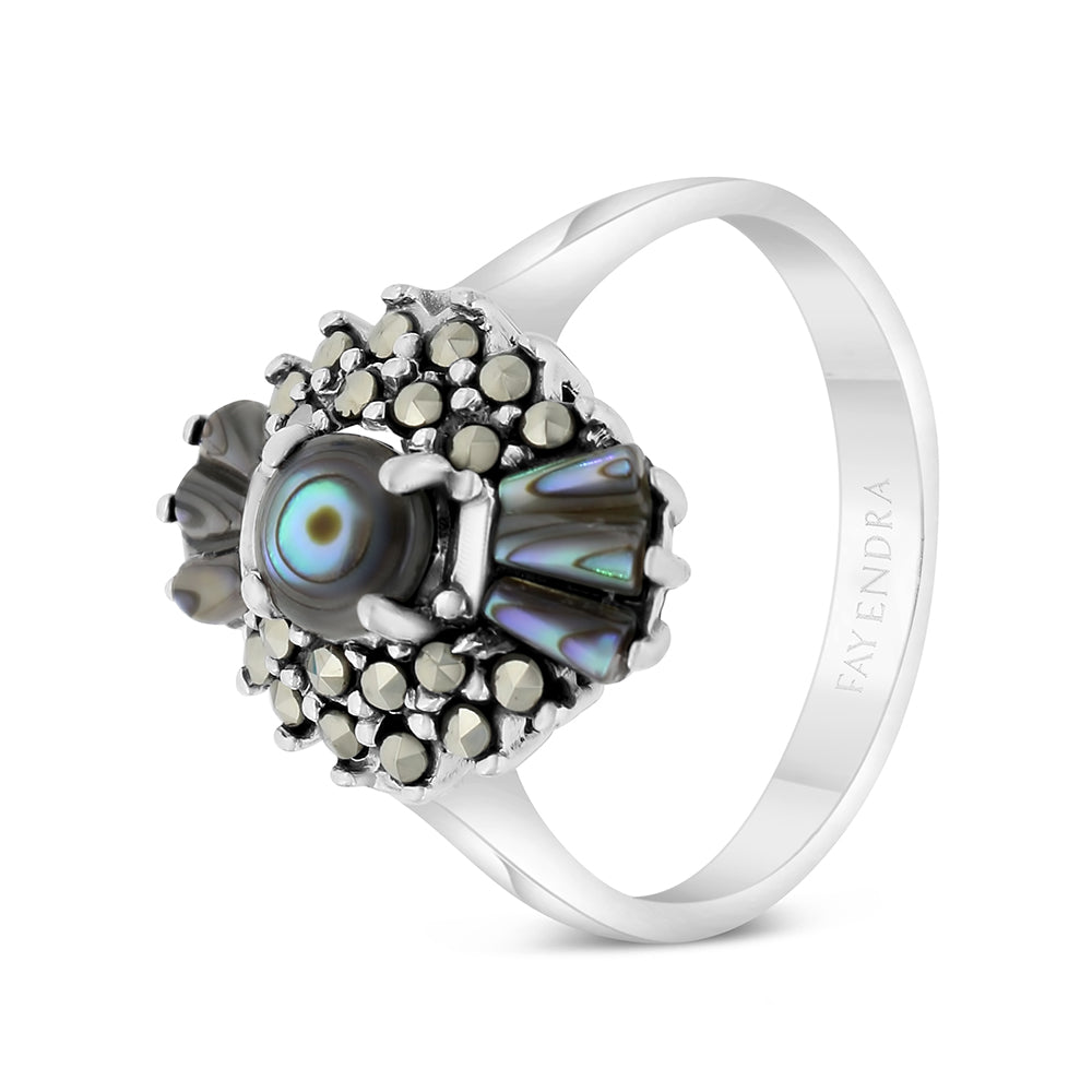 خاتم من الفضة الخالصة عيار 925 مرصع احجار صدف استرالي طبيعي و ماركسايت