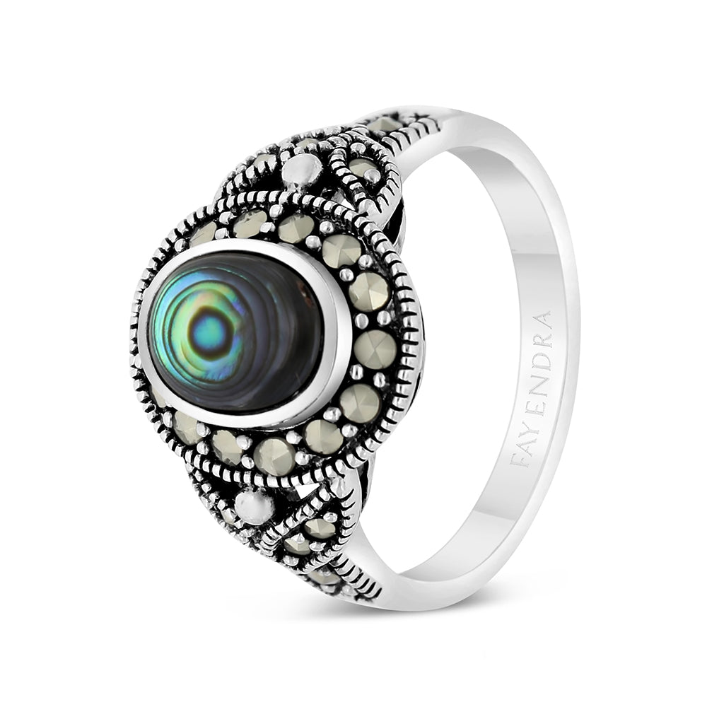 خاتم من الفضة الخالصة عيار 925 مرصع احجار صدف استرالي طبيعي و ماركسايت
