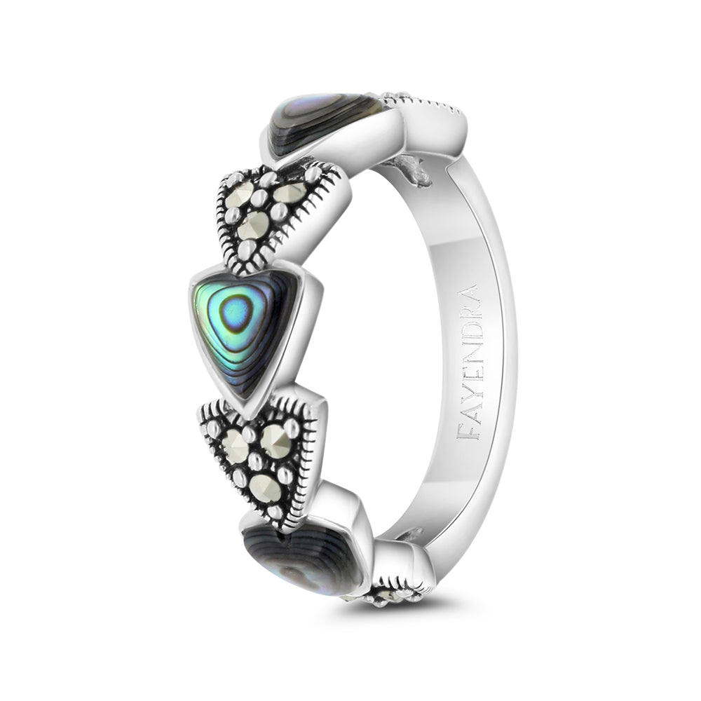 خاتم من الفضة الخالصة عيار 925 مرصع احجار صدف استرالي طبيعي و ماركسايت