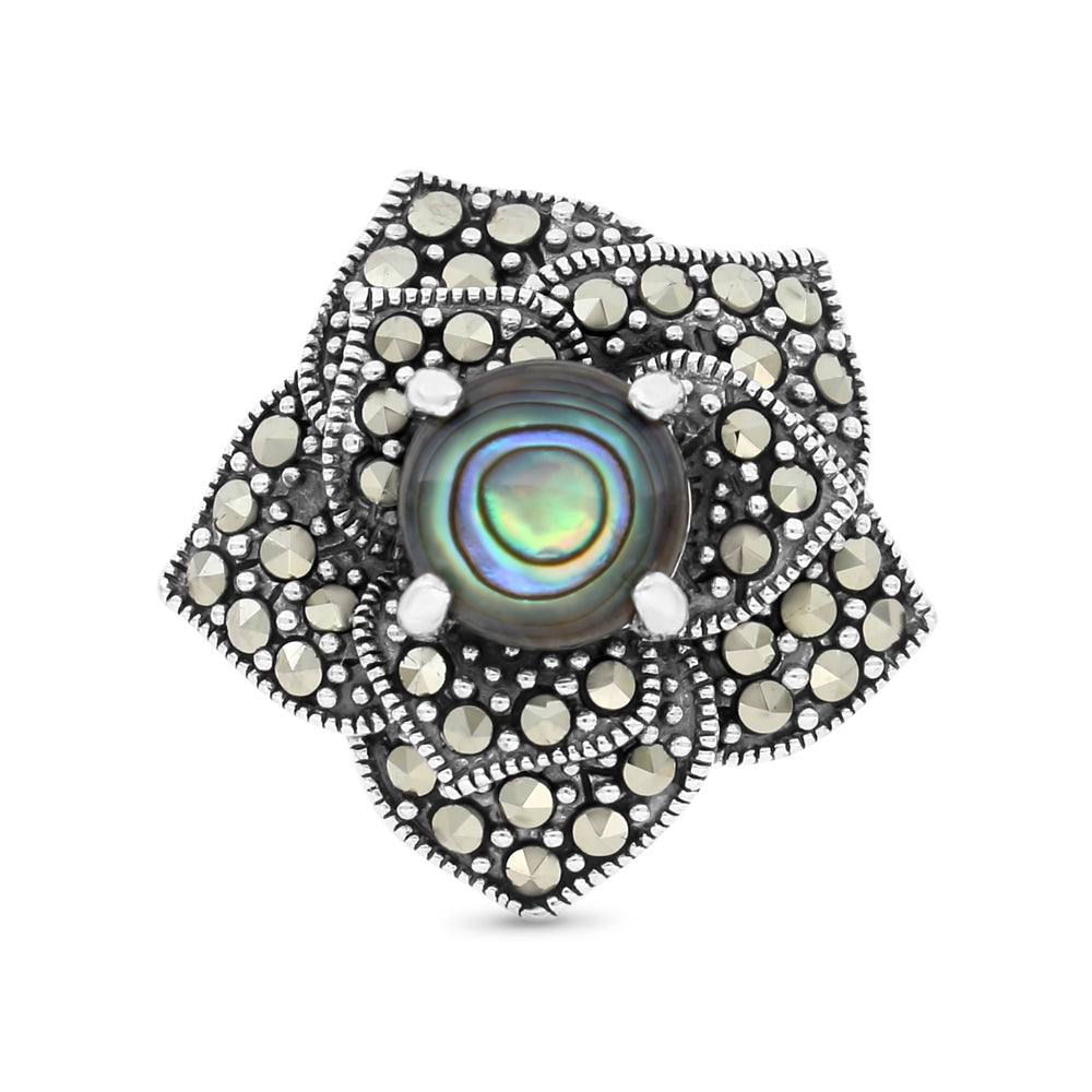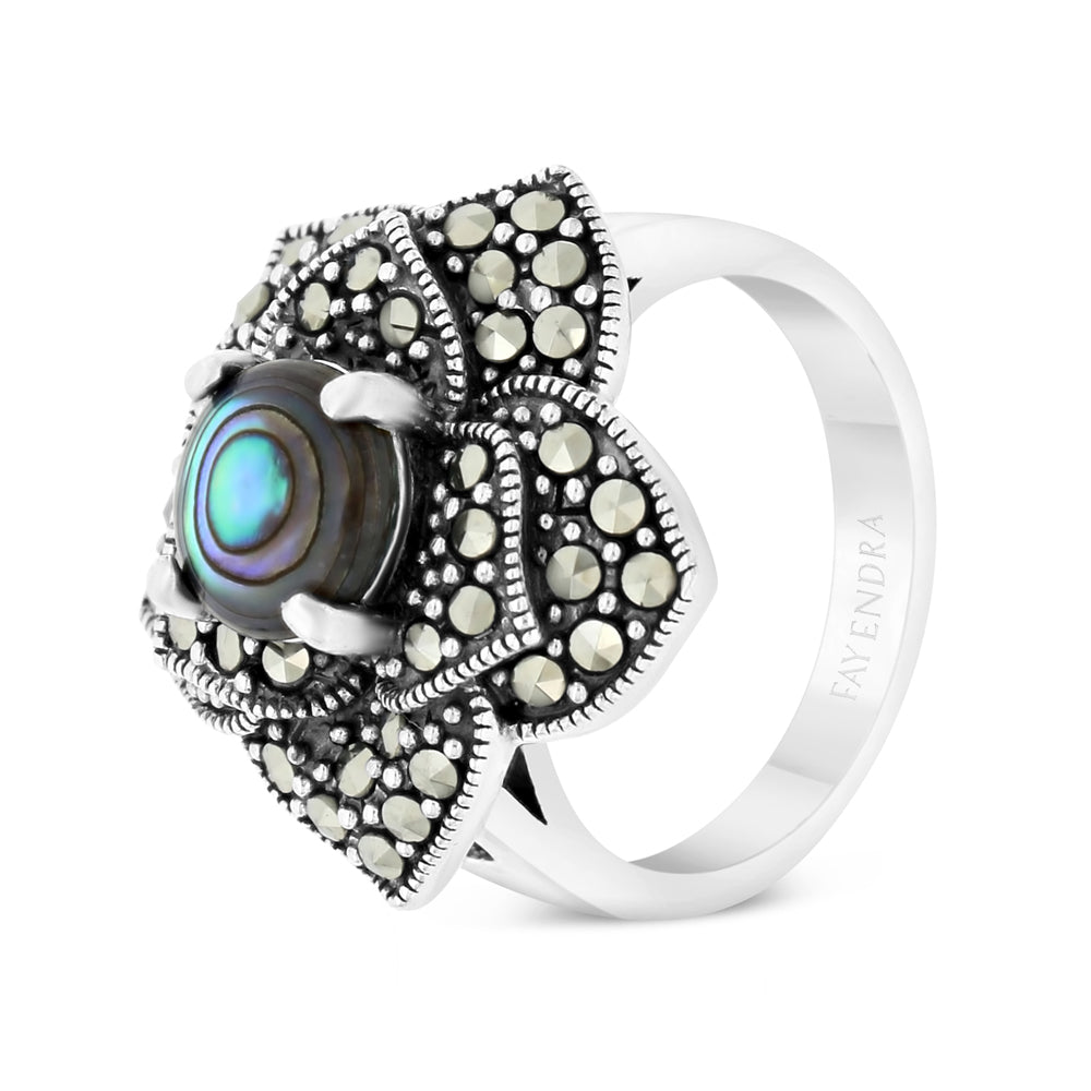 خاتم من الفضة الخالصة عيار 925 مرصع احجار صدف استرالي طبيعي و ماركسايت