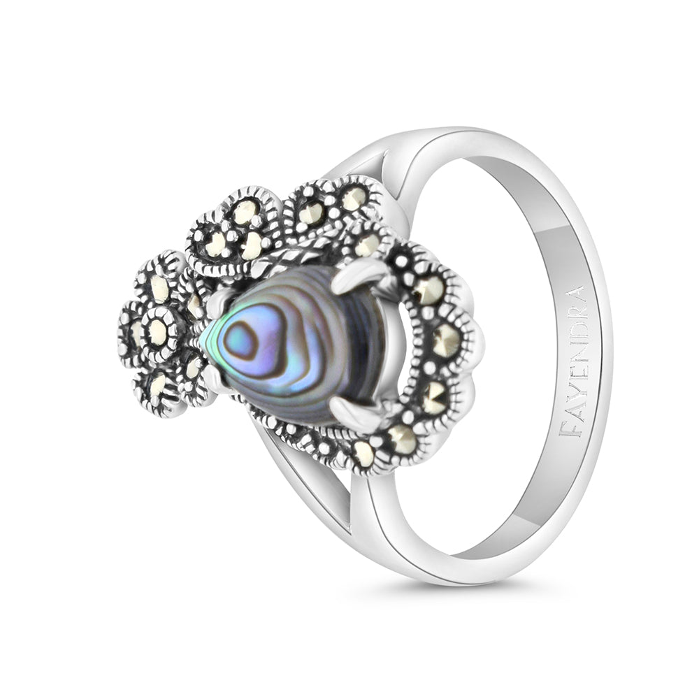خاتم من الفضة الخالصة عيار 925 مرصع احجار صدف استرالي طبيعي و ماركسايت