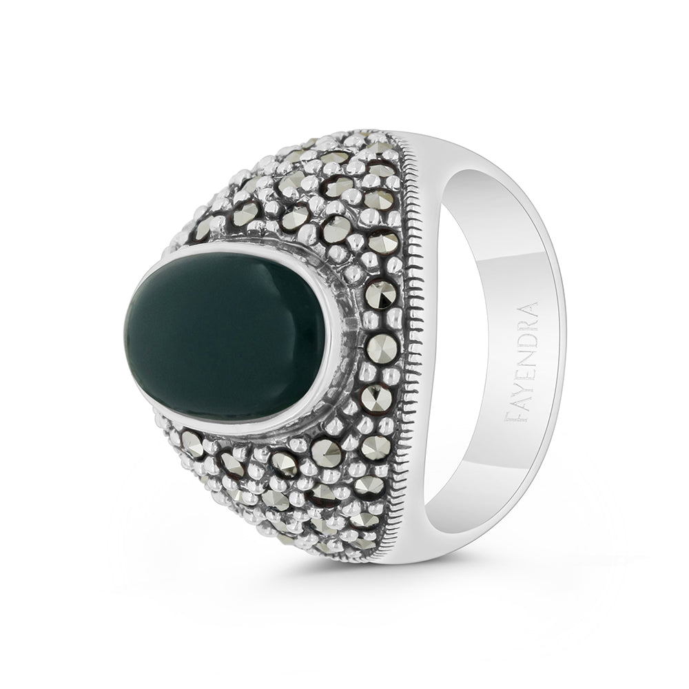 خاتم من الفضة الخالصة عيار 925 مرصع احجار عقيق جاد اخضر طبيعي و ماركسايت