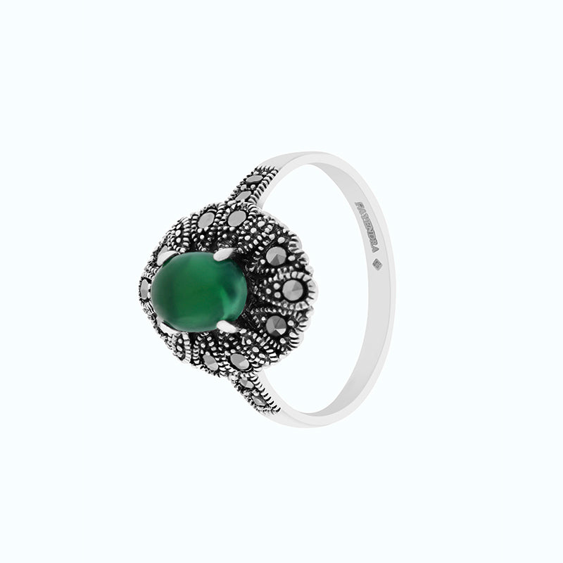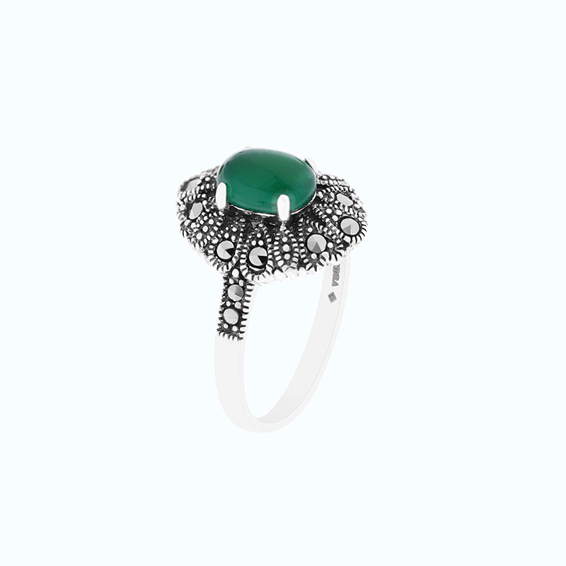 خاتم من الفضة الخالصة عيار 925 مرصع احجار عقيق جاد اخضر طبيعي و ماركسايت