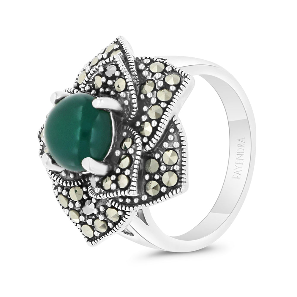 خاتم من الفضة الخالصة عيار 925 مرصع احجار عقيق جاد اخضر طبيعي و ماركسايت