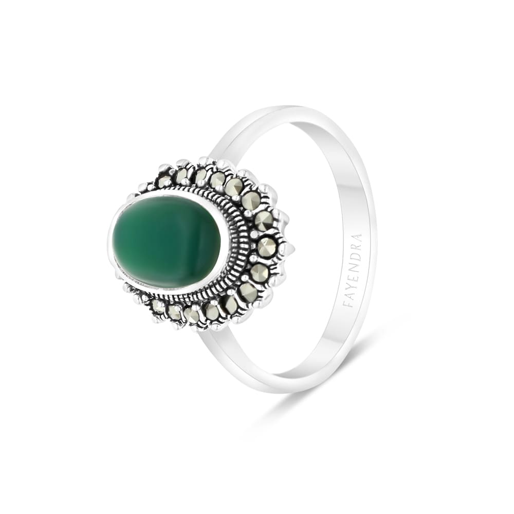 خاتم من الفضة الخالصة عيار 925 مرصع احجار عقيق جاد اخضر طبيعي و ماركسايت
