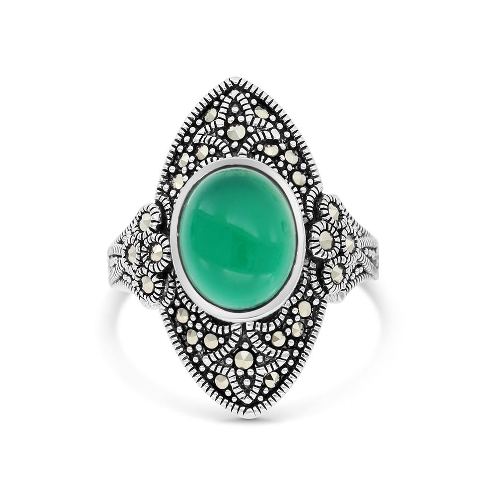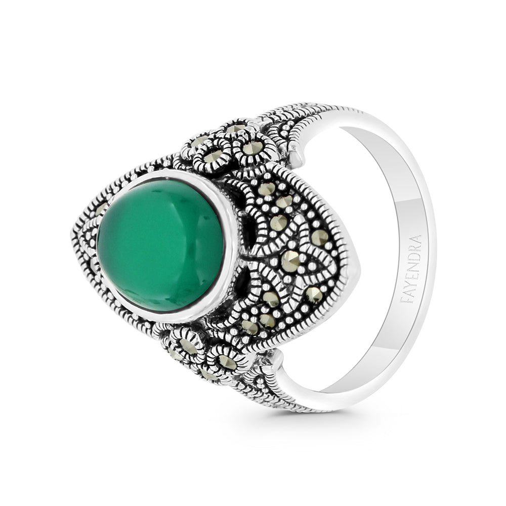 خاتم من الفضة الخالصة عيار 925 مرصع احجار عقيق جاد اخضر طبيعي و ماركسايت