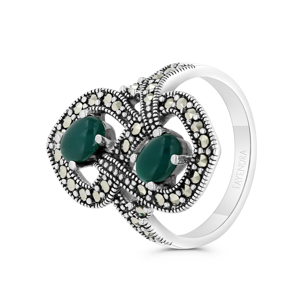 خاتم من الفضة الخالصة عيار 925 مرصع احجار عقيق جاد اخضر طبيعي و ماركسايت
