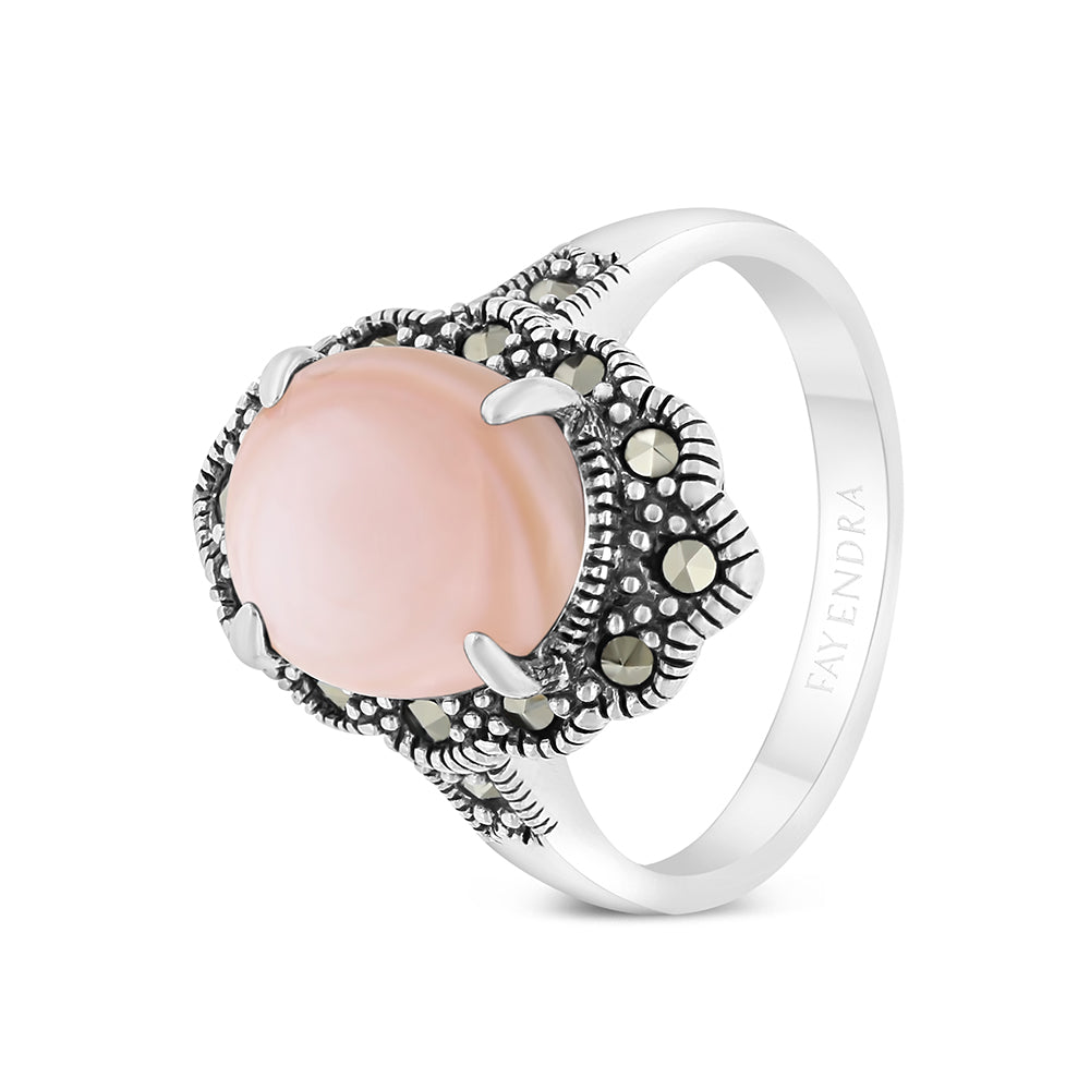 خاتم من الفضة الخالصة عيار 925 مرصع احجار صدف وردي طبيعي و ماركسايت