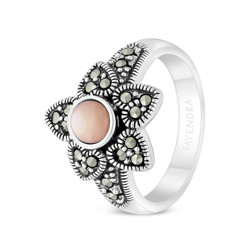 المزين بأحجار الماركاسيت وحجر صدف طبيعي في الوسط بلون وردي ناعم.