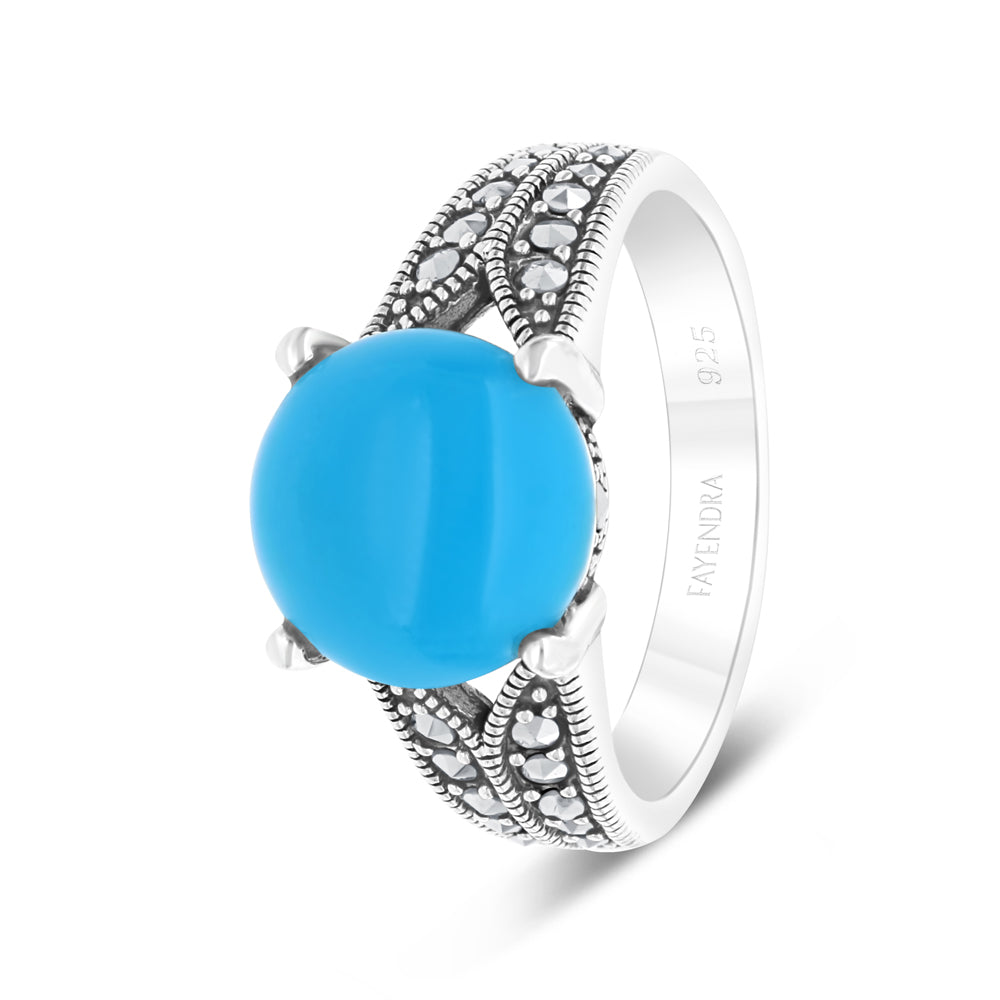 خاتم من الفضة الخالصة عيار 925 مرصع احجار فيروز معالج و ماركسايت