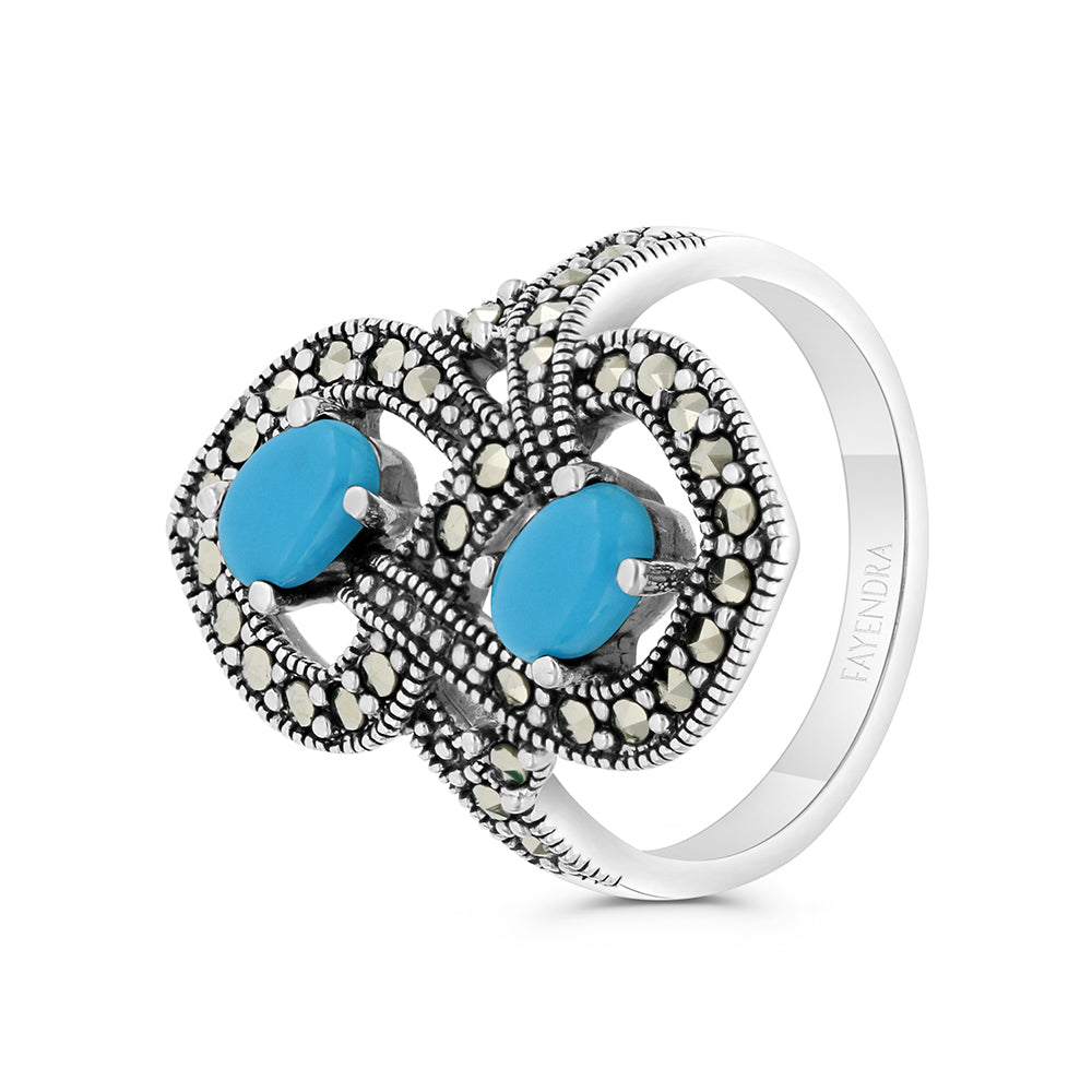 خاتم من الفضة الخالصة عيار 925 مرصع احجار فيروز معالج و ماركسايت