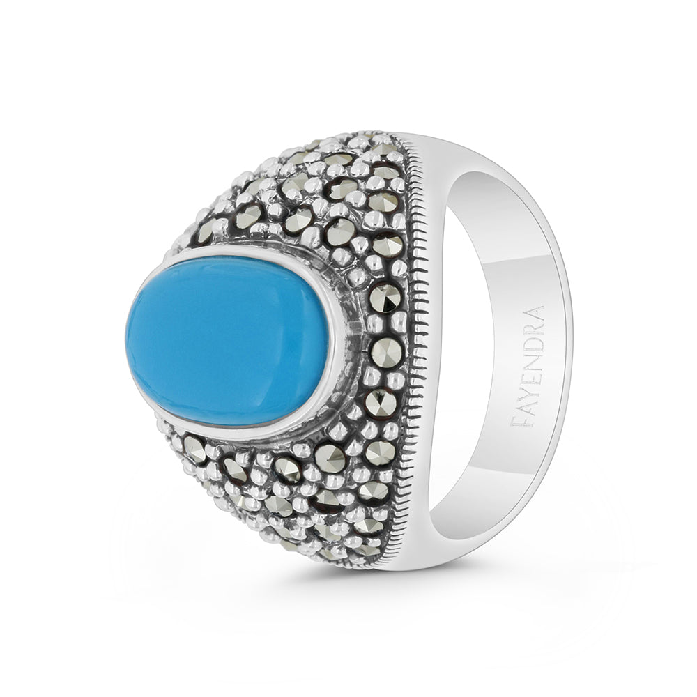 خاتم من الفضة الخالصة عيار 925 مرصع احجار فيروز معالج و ماركسايت