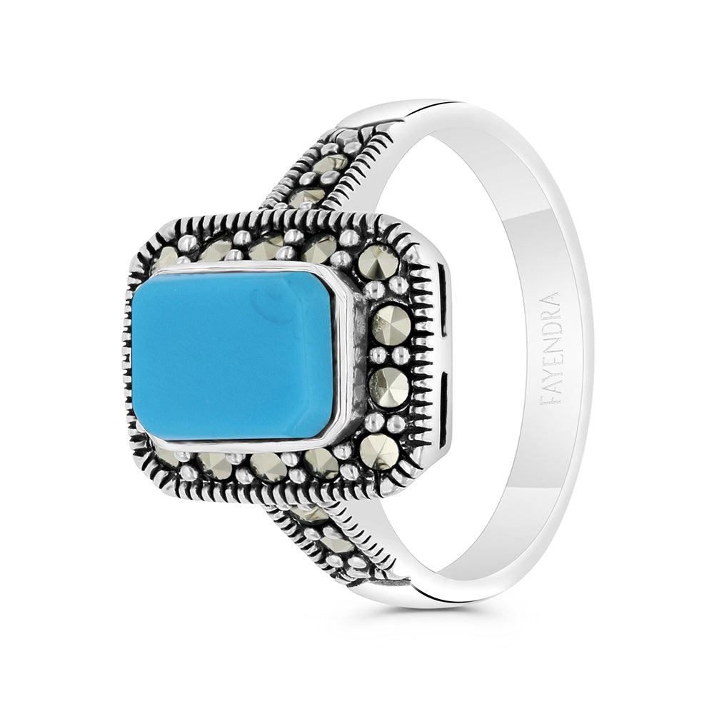 خاتم من الفضة الخالصة عيار 925 مرصع احجار فيروز معالج و ماركسايت