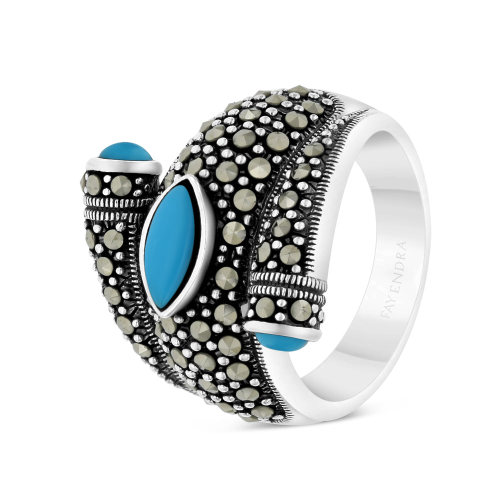 خاتم من الفضة الخالصة عيار 925 مرصع احجار فيروز معالج و ماركسايت
