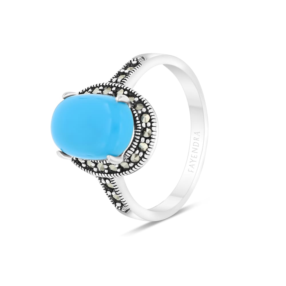 خاتم من الفضة الخالصة عيار 925 مرصع احجار فيروز معالج و ماركسايت