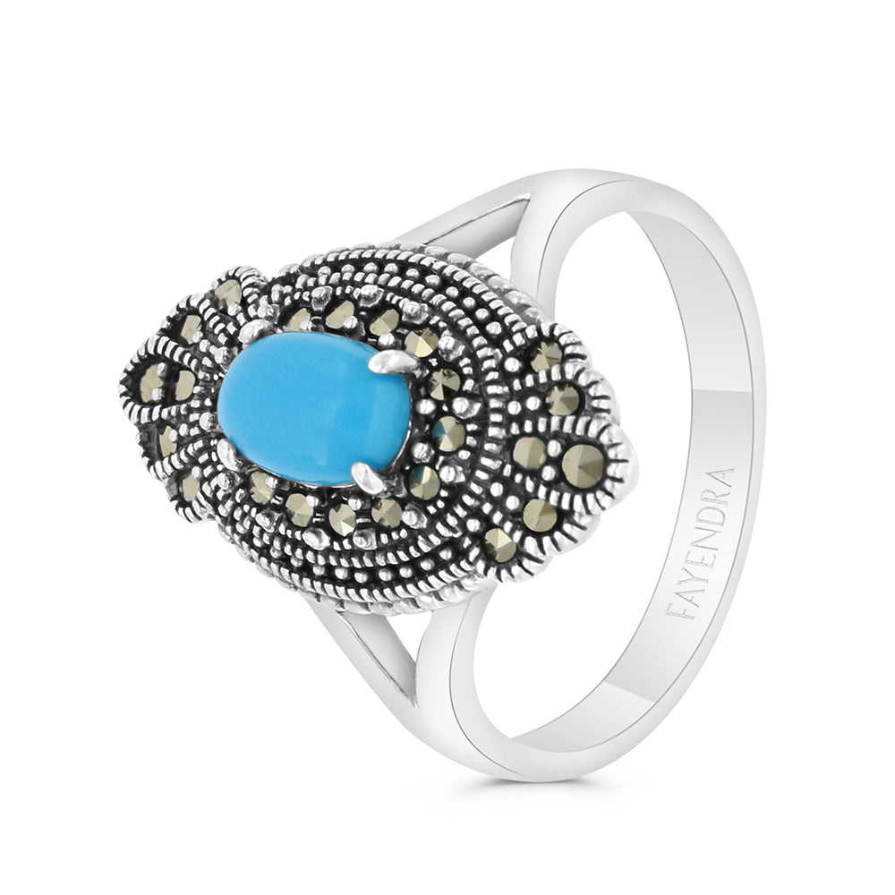 خاتم من الفضة الخالصة عيار 925 مرصع احجار فيروز معالج و ماركسايت