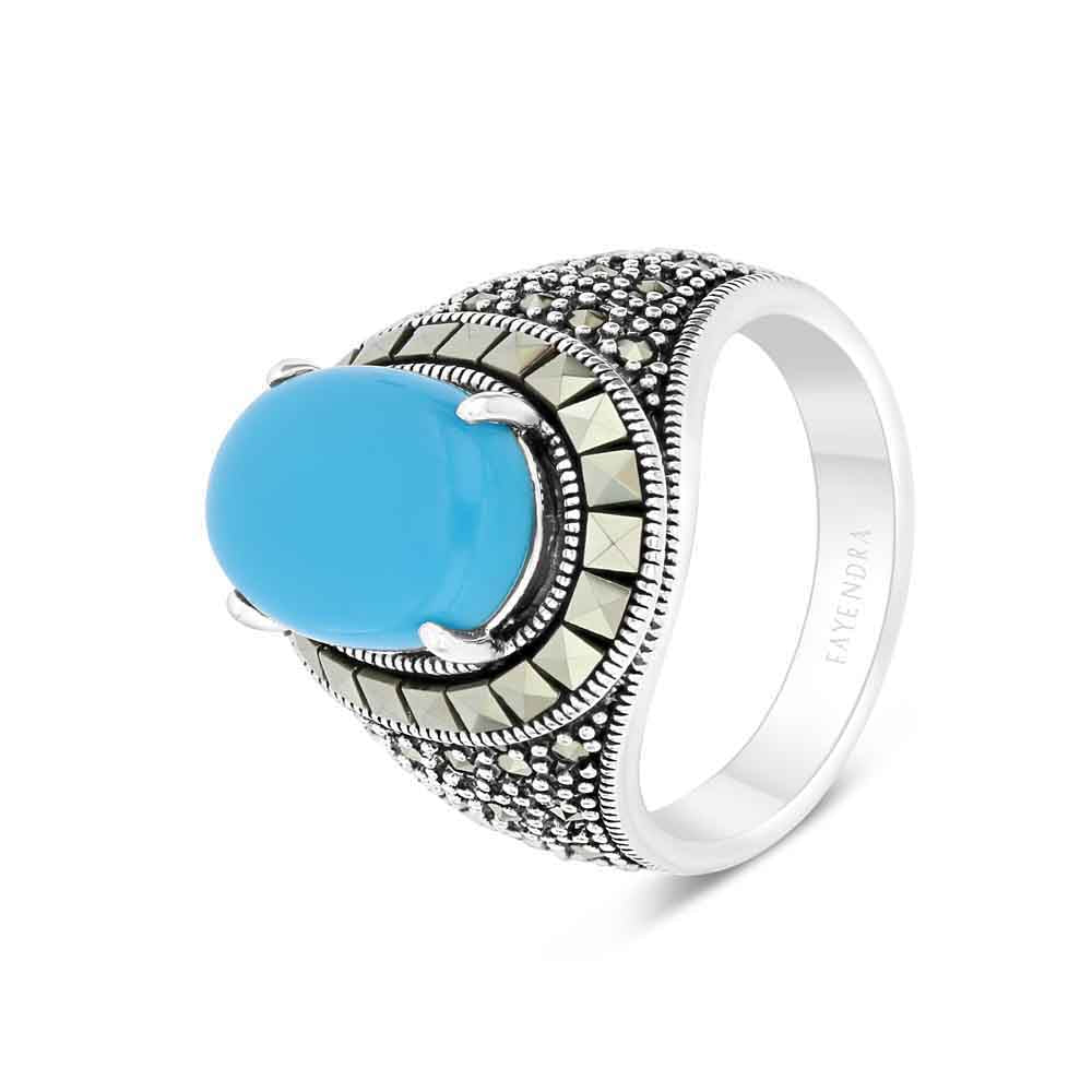 خاتم رجالي منالفضة الخالصة عيار 925 مرصع احجار فيروز معالج و ماركسايت