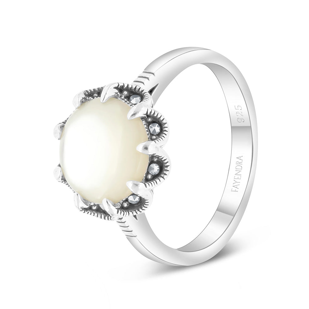 خاتم من الفضة الخالصة عيار 925 مرصع احجار صدف ابيض طبيعي و ماركسايت