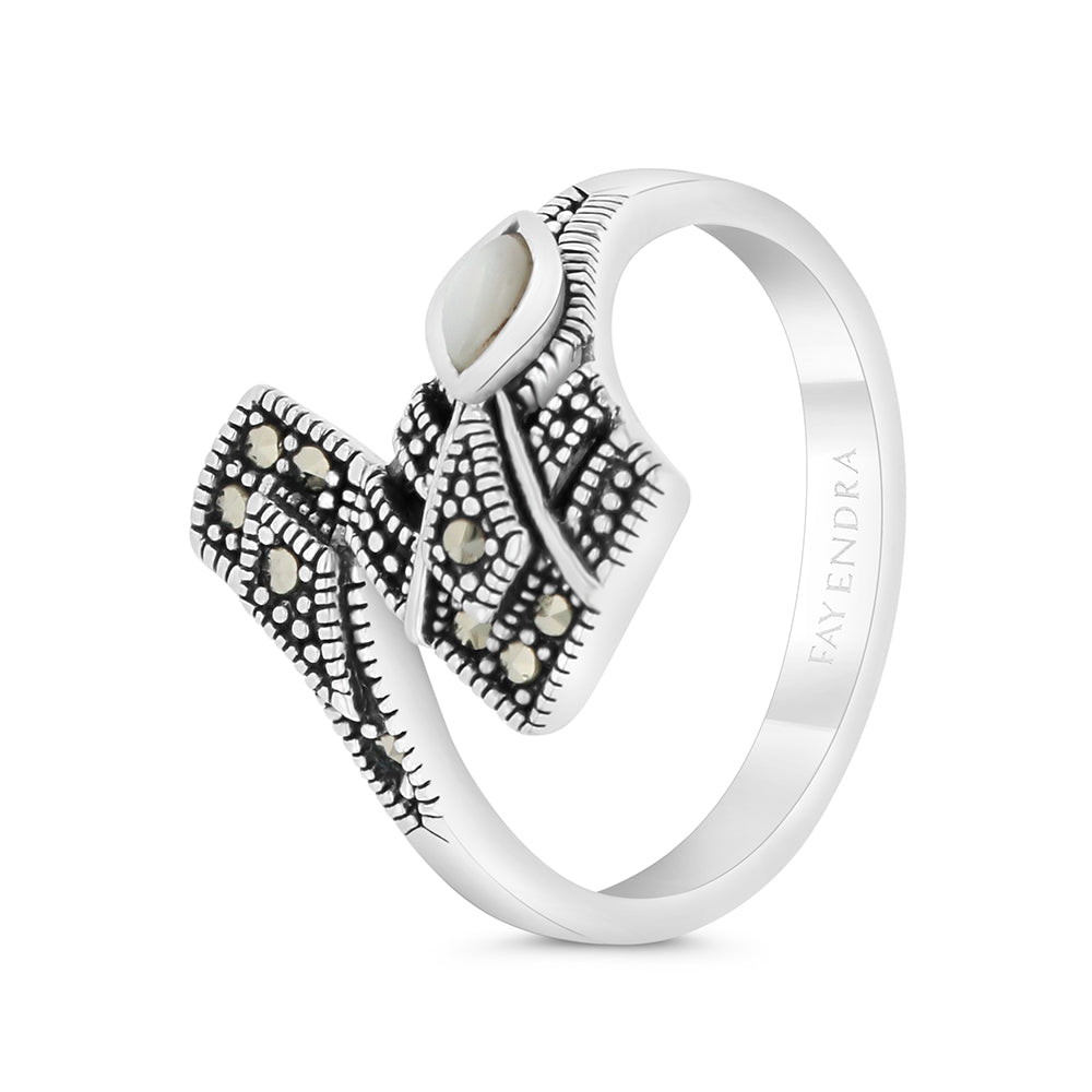 خاتم من الفضة الخالصة عيار 925 مرصع احجار صدف ابيض طبيعي و ماركسايت