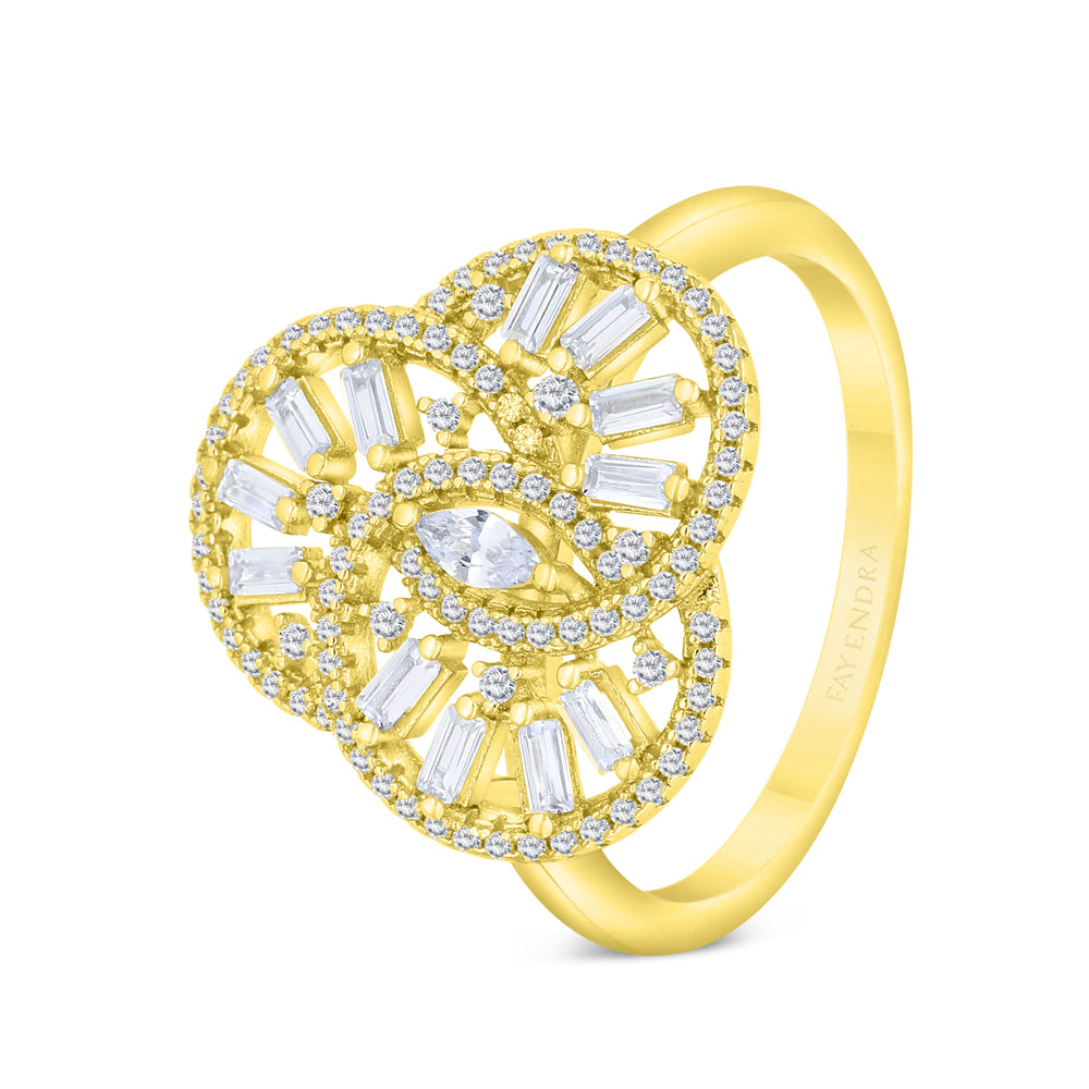 نسقي إطلالة أنيقة ومميزة مع هذا الخاتم الرائع من الفضة الاسترلينية عيار 925 المطلي بالذهب والمرصع بأحجار الزركون اللامعة