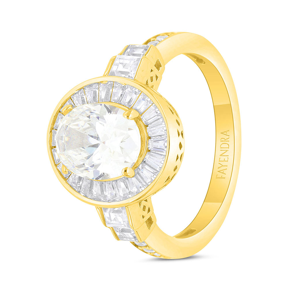 كوني محط الأنظار مع خاتمنا من الفضة الإسترلينية عيار 925 المطلي بالذهب والمتميز بحجر زركون أصفر بقصة أوفال تحيطه أحجار الزركون الأبيض اللامعة.