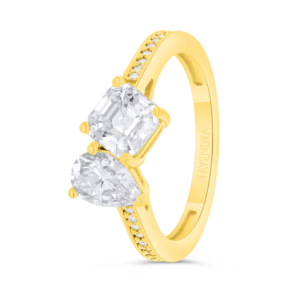 من أجمل تصاميم فايندرا وأرقاها، هذا الخاتم المصنوع من الفضة الاسترلينية عيار 925 والمرصع بأحجار الزركون الأصفر بقصة كوشن والدمعة والفصوص البيضاء اجعليه رفيقك في أهم مناسباتك وتألقي بإطلالة مميزة استثنائية تليق بك.