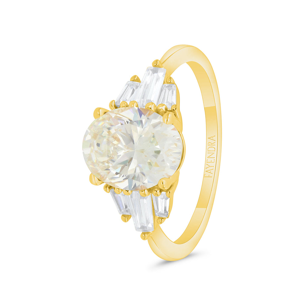 تميّزي بسحرٍ يليق بذوقكِ مع هذا الخاتم الآسر من فايندرا، المصنوع من الفضة الخالصة عيار 925 والمطليّ بالذهب. يتوسّط التصميم حجر زركون كناري ألماسي فاخر بقصة أوفالٍ يعكس عمق اللون، وعلى جانبيه تتلألأ أحجار زركونٍ بيضاء بقصة باغيتٍ أنيق تضفي توازناً متناغماً بين الفخامة والعصرية. قطعةٌ تجسّد الرقيّ والعملية في آنٍ واحد، لتكون لمستكِ الأنيقة لكل إطلالة. اقتنيها الآن!