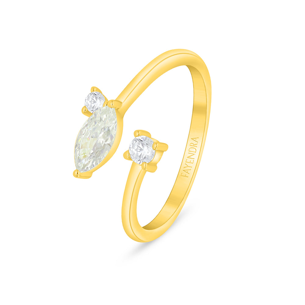 Total Weight: 2g تمتّعي بإطلالة فاتنة مع هذا الخاتم الرائع المصنوع من الفضة الخالصة عيار 925 والمطلي بطبقة من اللون الذهبي الآسر، بتصميم إطار رفيع مفتوح بأسلوب مرن تتوّجه أحجار من الزركون المتلألئ الكناري الألماسي بقصّة ماركيز الأنيقة وزركون أبيض بقصّة بريليانت البراقة، ليمنح أناملك تناغماً لونياً فاخرًا يضفي عليها لمسة ساحرة من الإشراق. اضيفيه الى سلتك الان!
