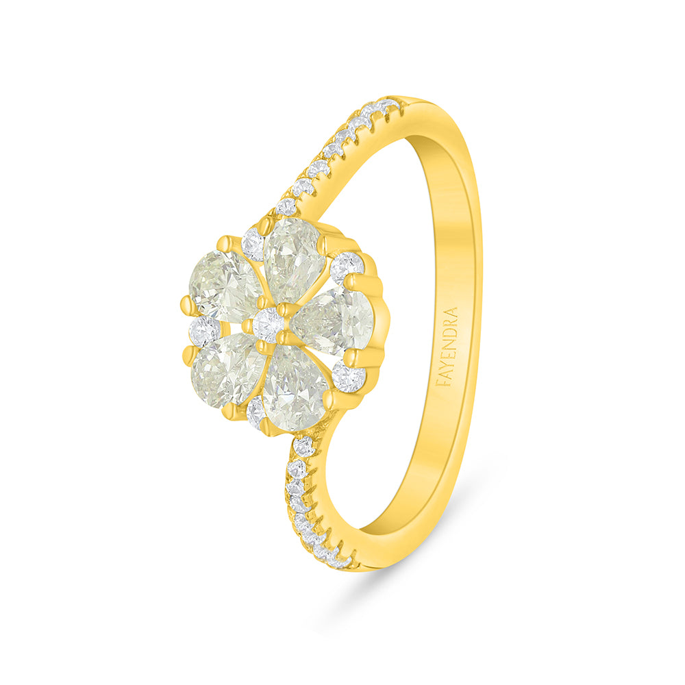 Total Weight: 2.4g جسّدي الجمال الناعم والمتعدد الطبقات مع خاتم فايندرا الفضي عيار 925، والمطلي بالذهبي ليزيد من اشراقه. يأتي بتصميم زهرة متفتحة، مرصّعة بزركون أبيض بقَصّة بريليانت مضيئة، تحيط به أربع جواهر من الزركون الأصفر الكناري، مقطوعة على شكل دمعة، ومرصوفة بدقّة وحرفية عالية لتُجسّد بتلات الزهرة المتفتحة ببريقٍ الألماس.ارتديه، وجسّدي القوة والجمال والجاذبية التي لا يمكن إنكارها. احصلي عليه الآن!