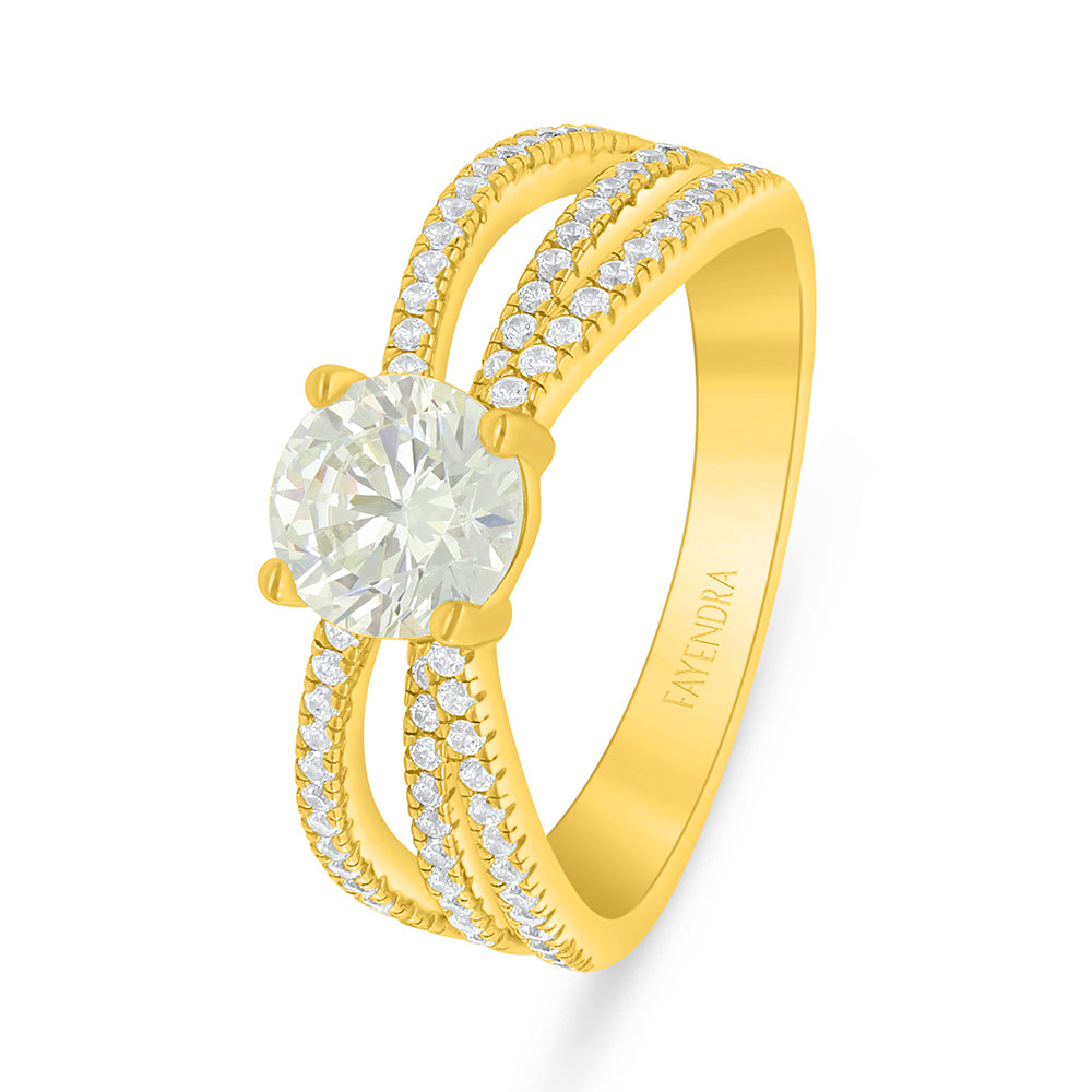 خاتم من الفضة الخالصة عيار 925 مطلي ذهبي مرصع بالزركون الكناري الالماسي و فص ابيض