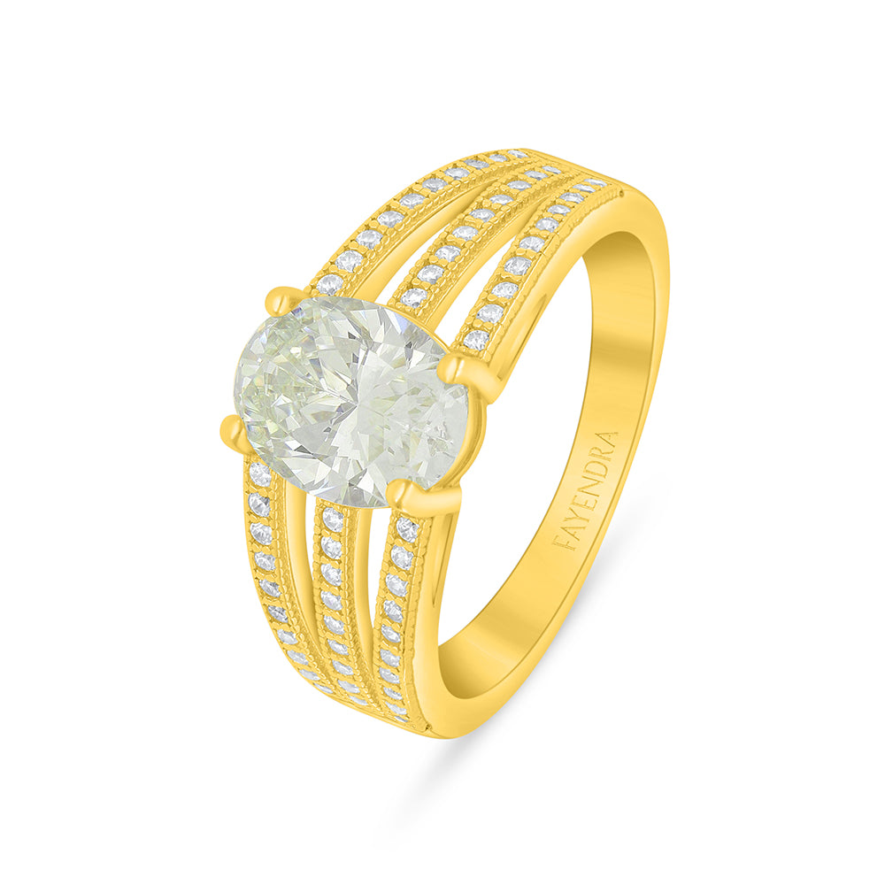 خاتم من الفضة الخالصة عيار 925 مطلي ذهبي مرصع بالزركون الكناري الالماسي و فص ابيض