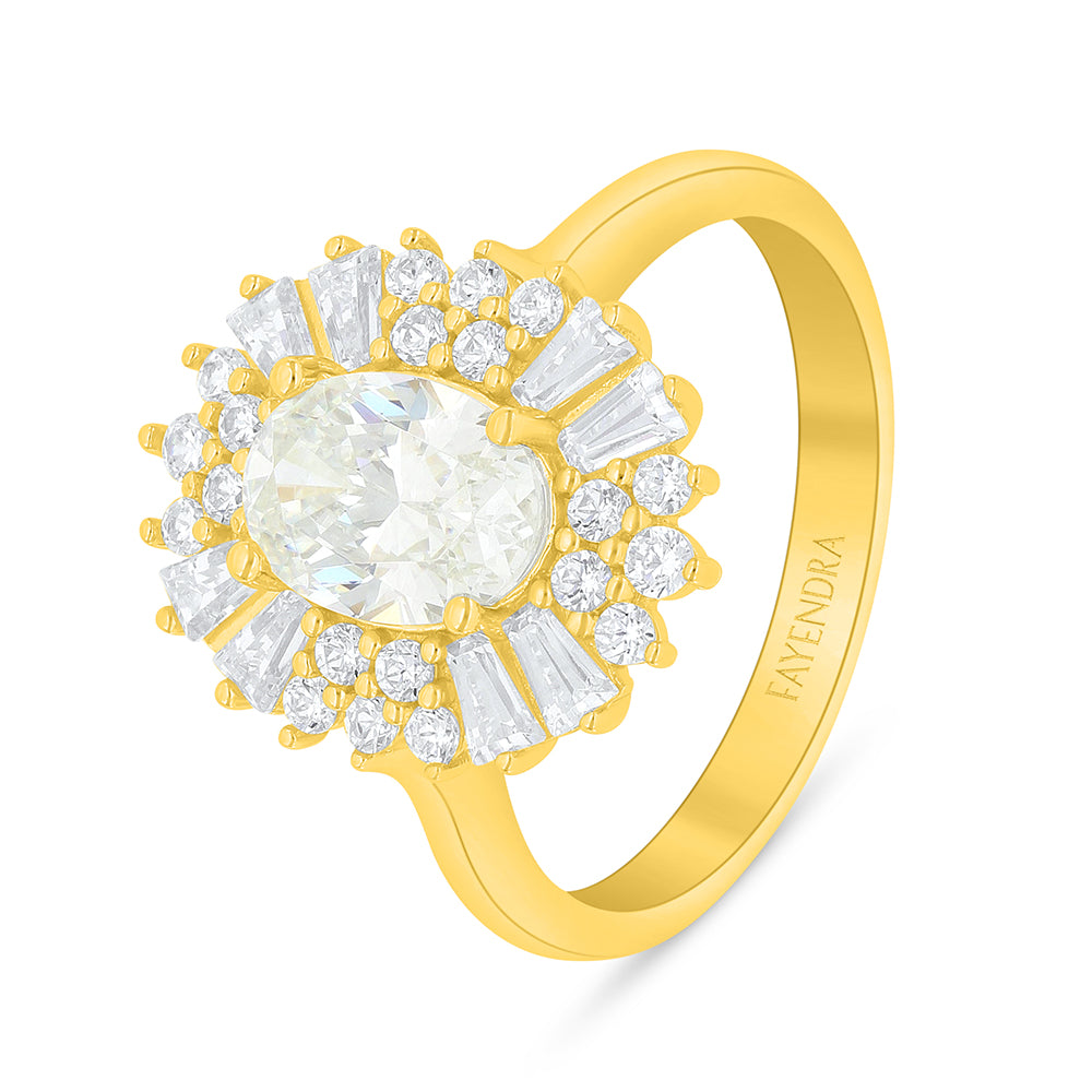 خاتم من الفضة الخالصة عيار 925 مطلي ذهبي مرصع بالزركون الكناري الالماسي و فص ابيض