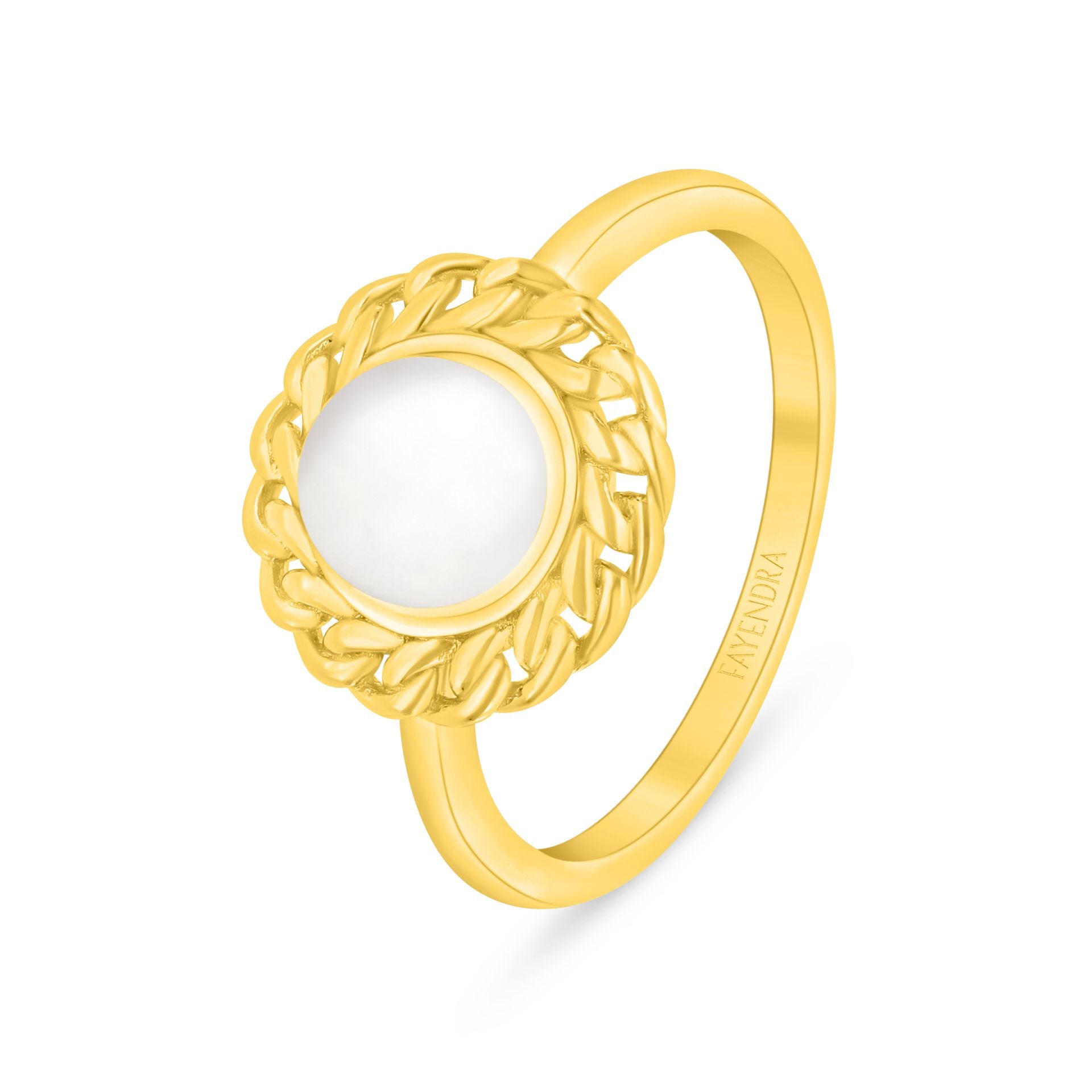 عززي من جمال و بهاء اطلالتك بإرتداء هذا الخاتم المصنوع من الفضة الخالصة عيار 925 والمغطى بطبقة من اللون الذهبي الجميل. يتميّز بحجر لؤلؤ طبيعي مركزي تحيط به سلسلة من الحلقات المتداخلة بتصميم هندسي متقن، ليمنحك حضورًا استثنائياً وضياء يليق بك. ارتديه بكل فخر واجذبي كل الأنظار إليكِ. احصلي عليه الآن!