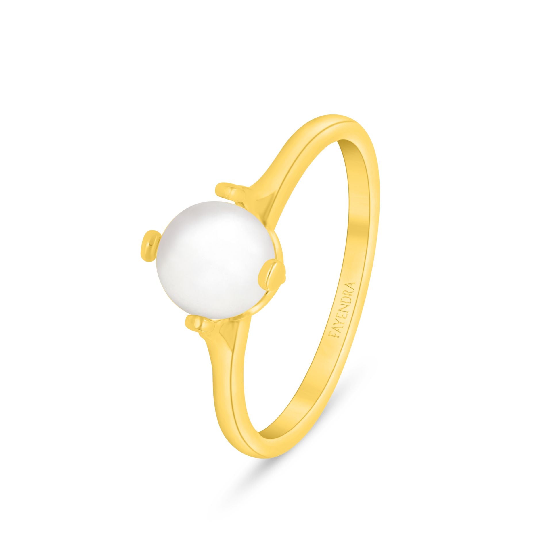 خاتم من الفضة الخالصة عيار 925 مطلي ذهبي مرصع لولو ابيض طبيعي