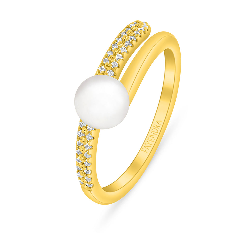 خاتم من الفضة الخالصة عيار 925 مطلي ذهبي مرصع لولو ابيض طبيعي و فص ابيض