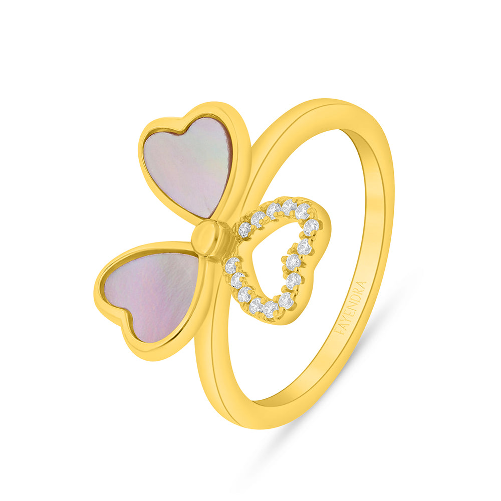 خاتم من الفضة الخالصة عيار 925 مطلي ذهبي مرصع صدف وردي و فص ابيض