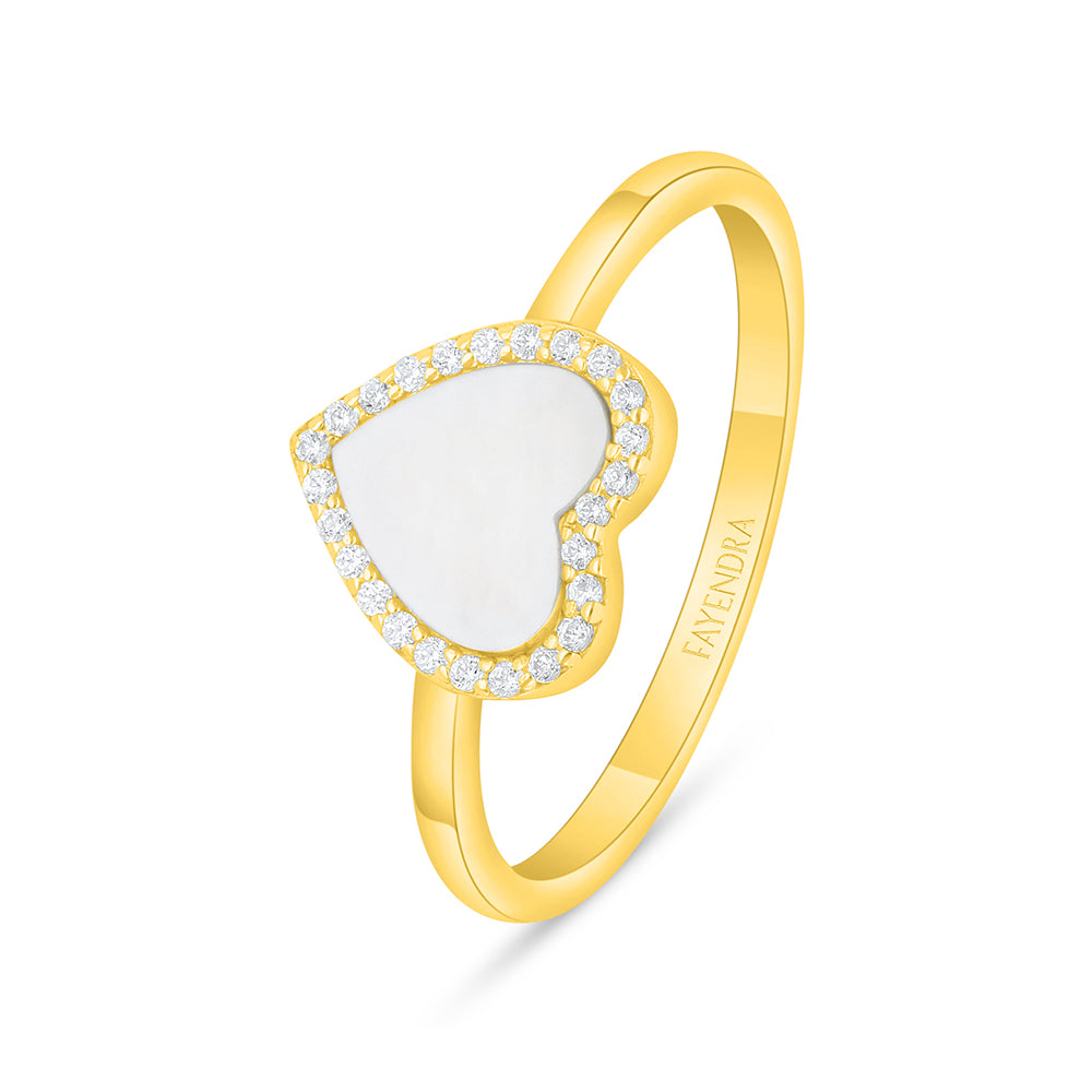 خاتم من الفضة الخالصة عيار 925 مطلي ذهبي مرصع صدف ابيض و فص ابيض