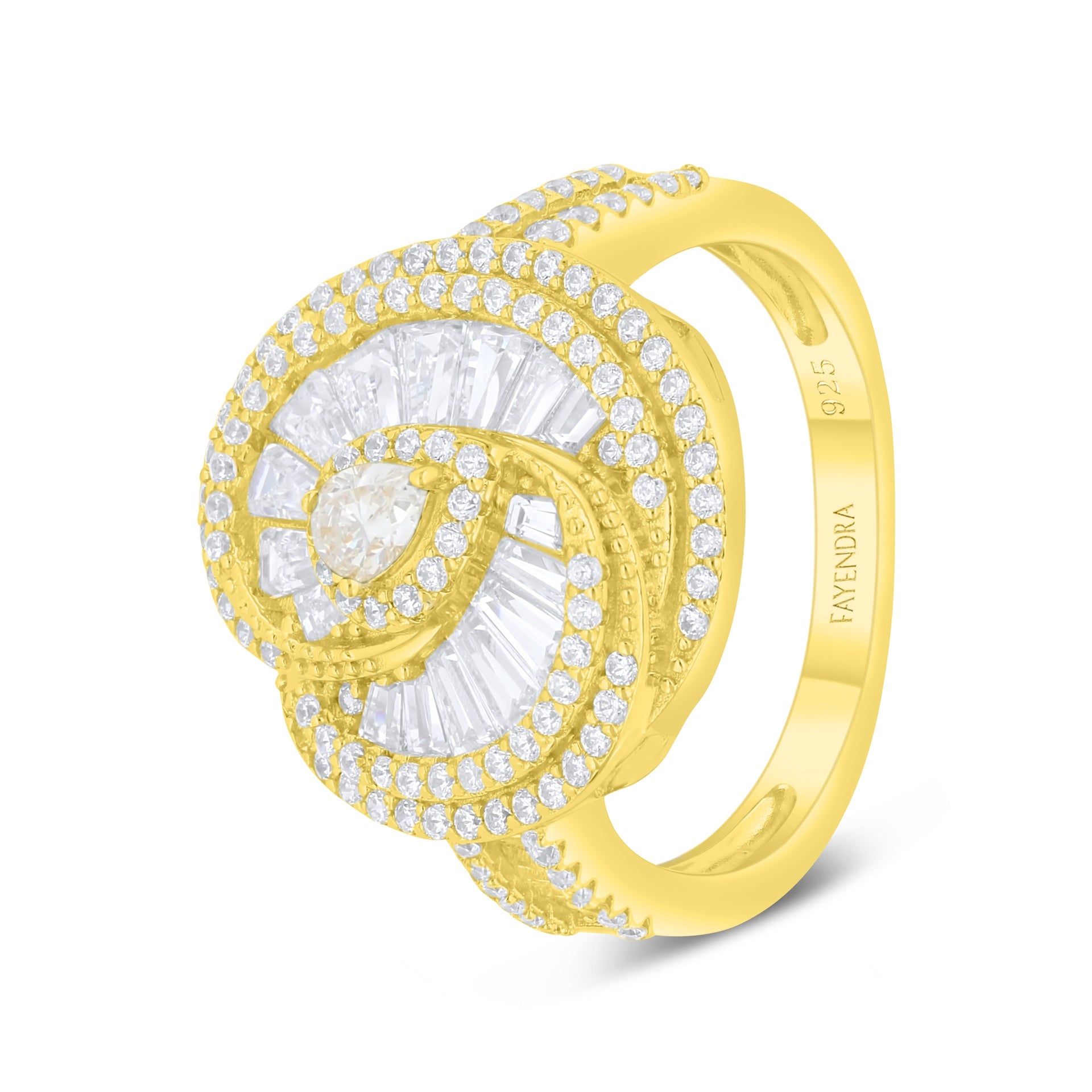 خاتم من الفضة الخالصة عيار 925 مطلي ذهبي مرصع فص ابيض