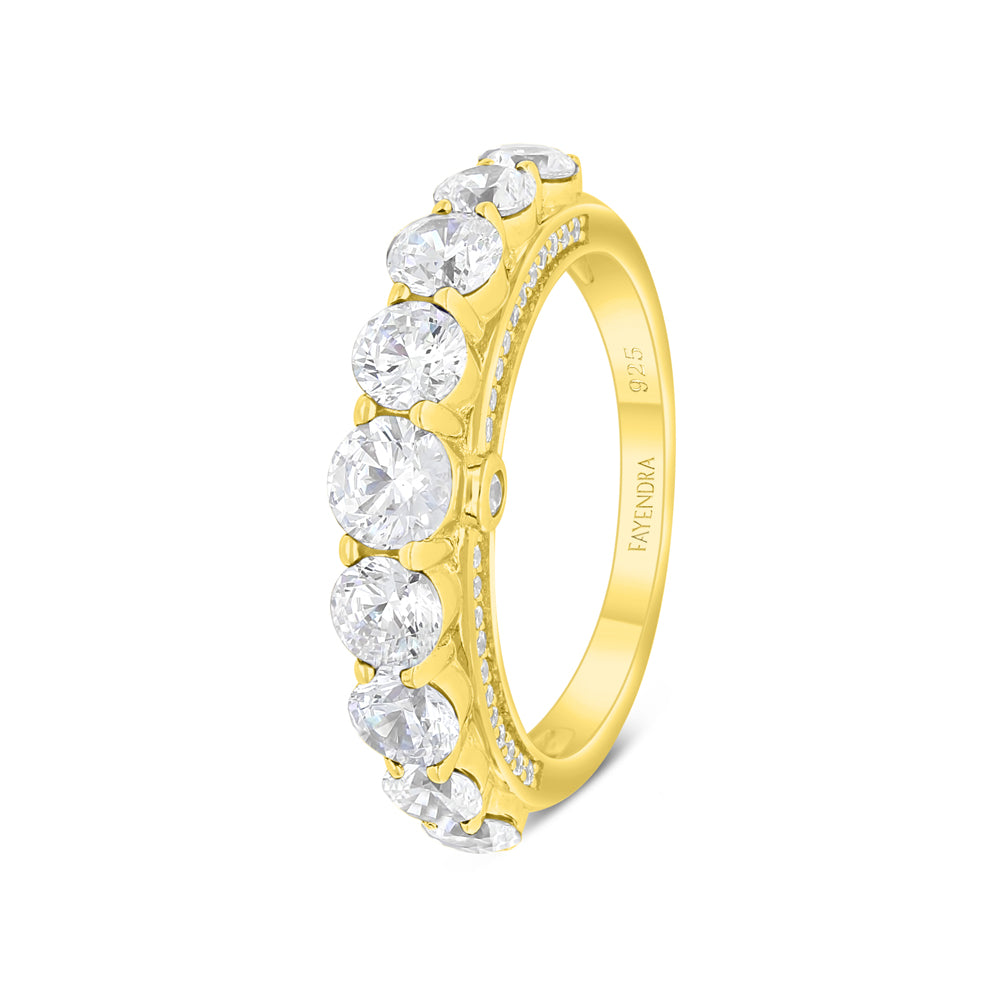 خاتم من الفضة الخالصة عيار 925 مطلي ذهبي مرصع فص ابيض