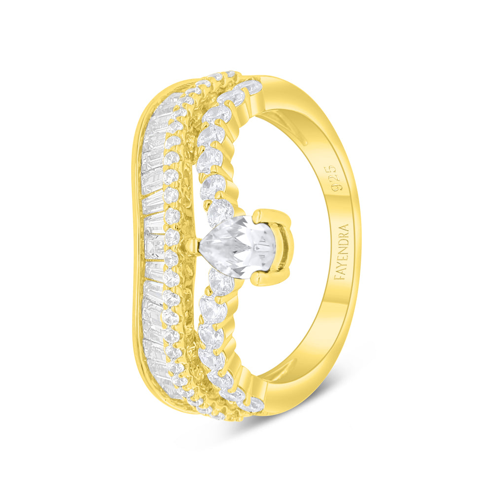 خاتم من الفضة الخالصة عيار 925 مطلي ذهبي مرصع فص ابيض