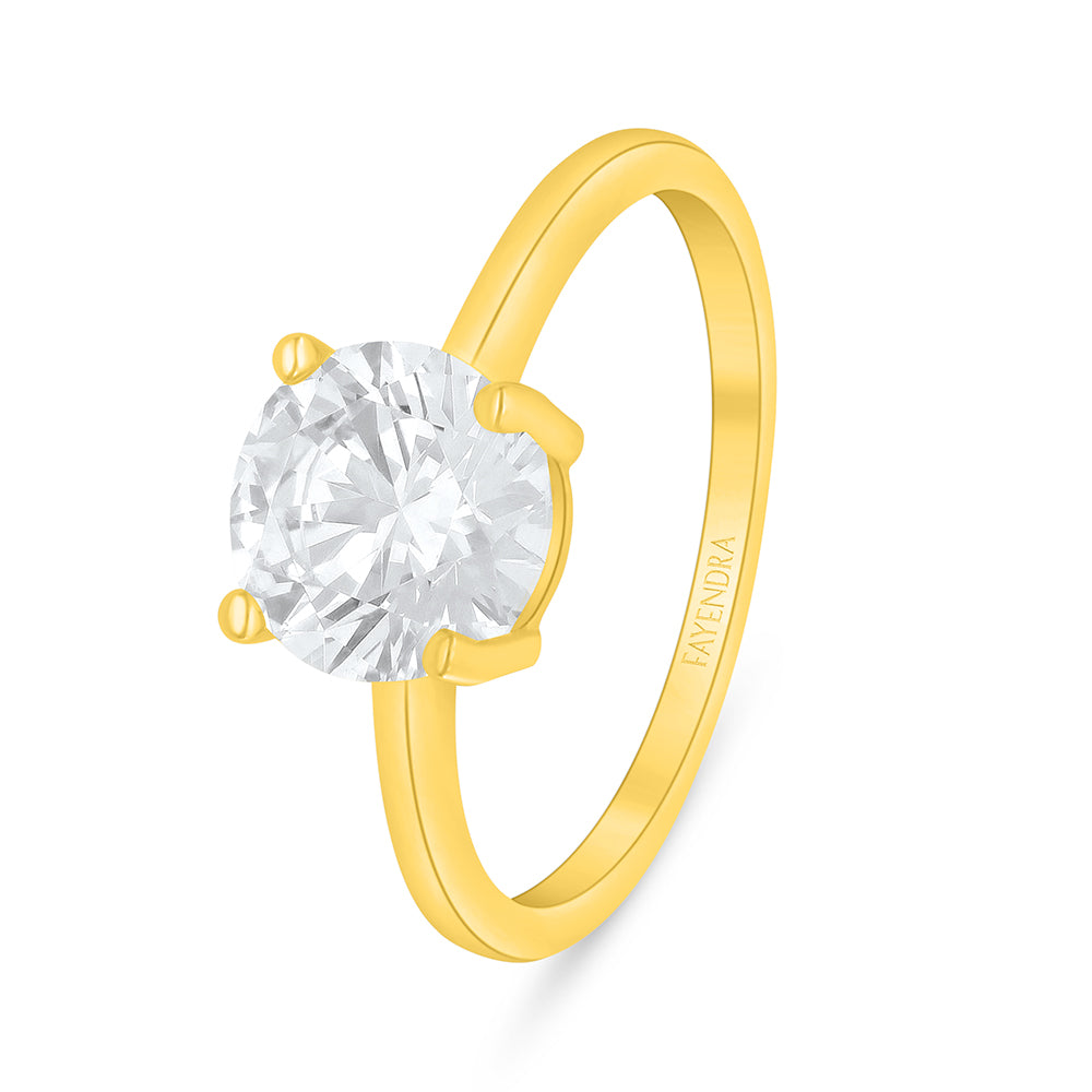 خاتم من الفضة الخالصة عيار 925 مطلي ذهبي مرصع فص ابيض